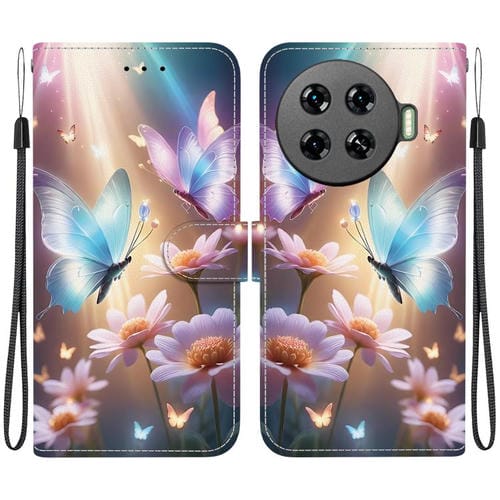 Funda de Cuero para Tecno Spark 20 Pro+ 4G con Dibujo de Mariposa, Amor y Flores