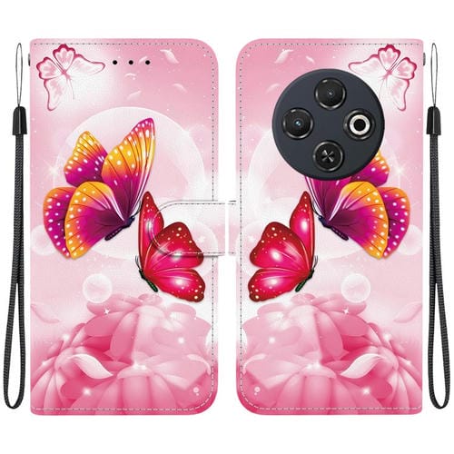Funda de Cuero para Tecno Spark 30C con Dibujo de Colores y Textura de Cristal (Mariposas Rosas)