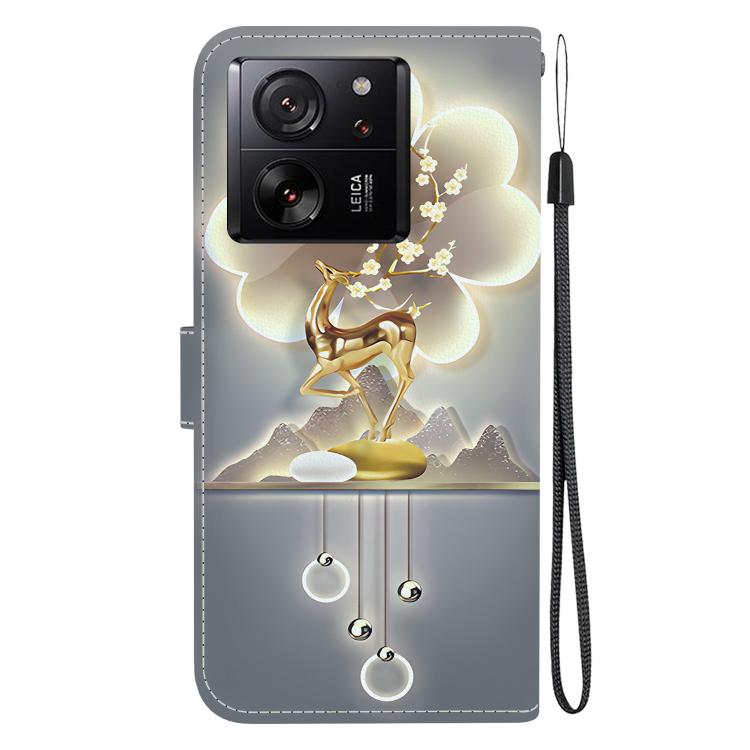 Funda de Cuero con Dibujo de Colores y Textura de Cristal para Xiaomi 13T/13T Pro (Ciervo Sika)