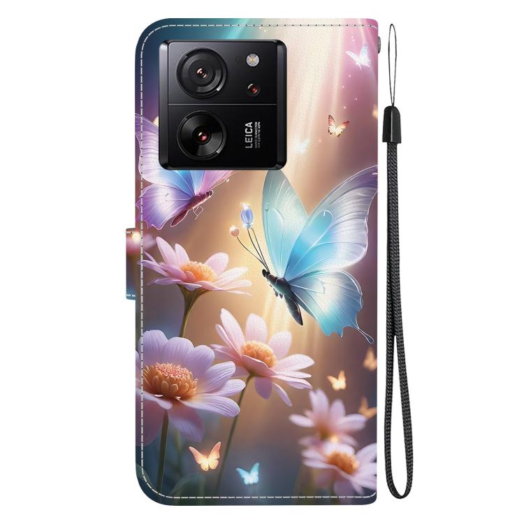 Funda de Cuero con Dibujo de Colores y Textura de Cristal para Xiaomi 13T/13T Pro (Mariposa, Amor y Flores)