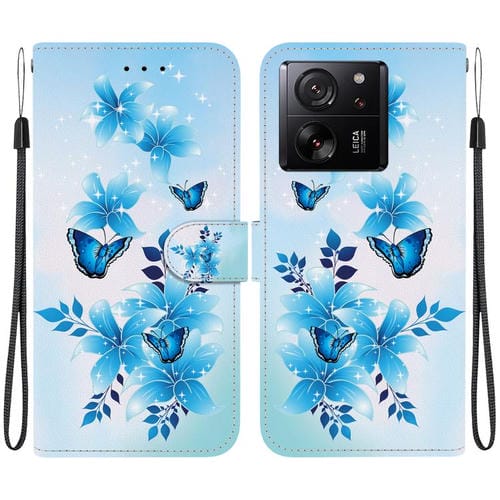 Funda de Cuero con Dibujo de Colores y Textura de Cristal para Xiaomi 13T/13T Pro (Mariposas Azules)