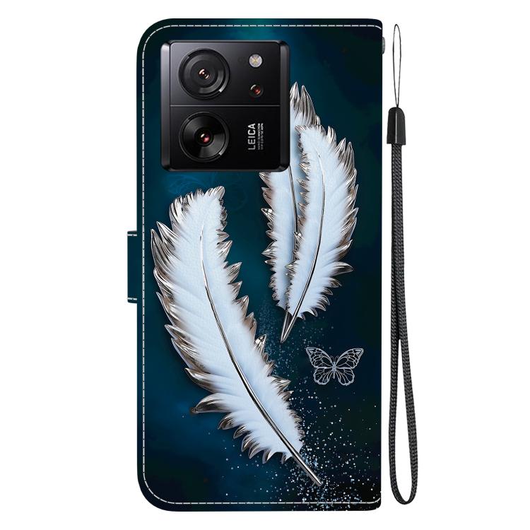 Funda de Cuero con Dibujo de Colores y Textura de Cristal para Xiaomi 13T/13T Pro (Plumas de Mariposa Blancas)