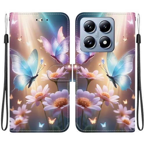 Funda de Cuero con Dibujo de Colores y Textura de Cristal para Xiaomi 14T Pro (Mariposa, Amor y Flores)