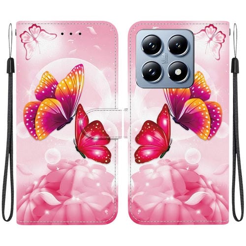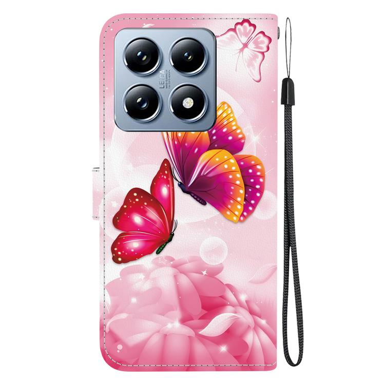 Funda de Cuero con Dibujo de Colores y Textura de Cristal para Xiaomi 14T Pro (Mariposas Rosas)