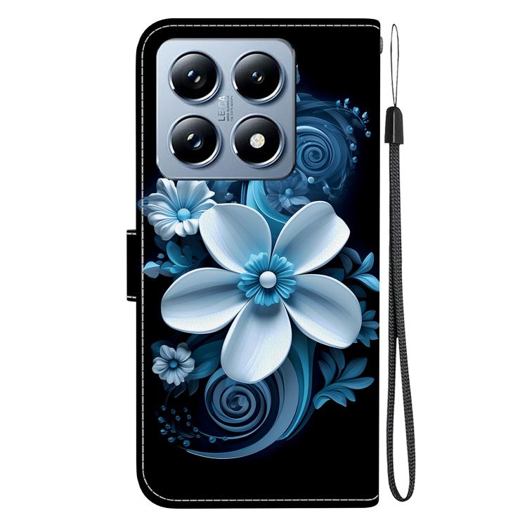 Funda de Cuero con Dibujo de Colores y Textura de Cristal para Xiaomi 14T Pro (Orquídea Negra)