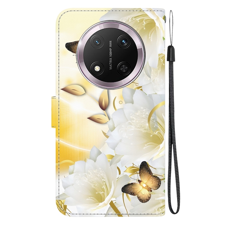Funda de Cuero para Honor X9C con Dibujo Mariposa Dorada Epiphyllum y Textura de Cristal