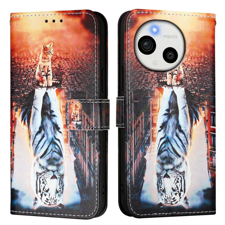 Funda de Cuero para Sharp Aquos Sense9 con Diseño de Gatos y Tigres