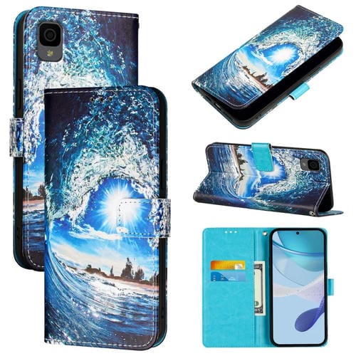 Funda de Cuero para TCL 30 XL T701DL con Diseño de Ondas y Sol (Colores Lisos)