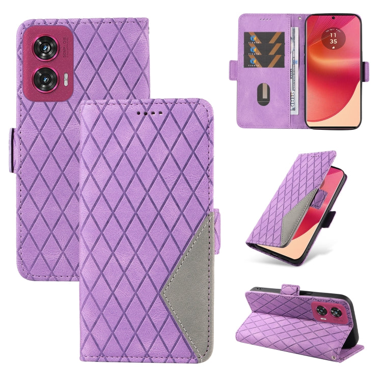 Funda de Cuero Motorola Edge 50 Fusion con Diseño Entramado Rombal de Dos Colores (Morado)