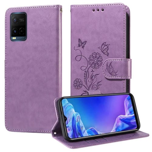 Funda de Cuero con Diseño de Mariposas y Flores En Relieve para Vivo Y21 2021 / Y21S / Y33S 4G (Morado)