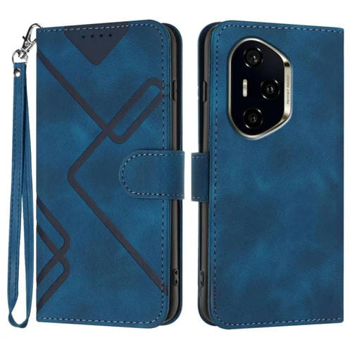 Funda de Cuero para Honor 300 Pro y Honor 300 Ultra con Diseño de Líneas y Tacto Suave (Azul Real)