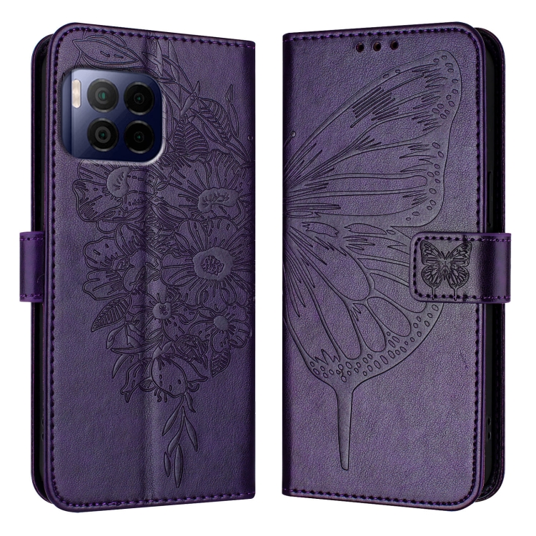 Funda de Cuero para T-Mobile Revvl 7 Pro 5G con Diseño de Mariposa en Relieve (Morado Oscuro)