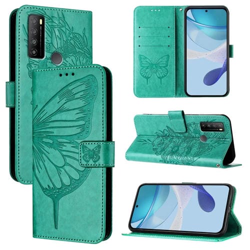 Funda de Cuero para TCL 30 Xl T701Dl con Diseño de Mariposa en Relieve (Verde)