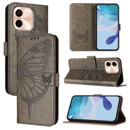 Funda de Cuero con Diseño de Mariposa En Relieve para Vivo Y28 4G (Gris)