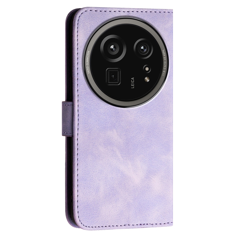 Funda de Cuero para Sharp Aquos R9 Pro con Diseño Mariposa en Relieve y Cordón (Morado Claro)