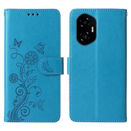 Funda de Cuero Honor 300 con Diseño de Mariposas y Flores en Relieve (Azul)