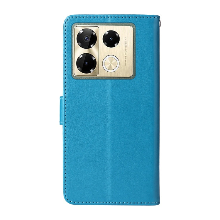 Funda de Cuero con Diseño de Mariposas y Flores en Relieve para Infinix Note 40 Pro 4G/5G/Pro+ (Azul)