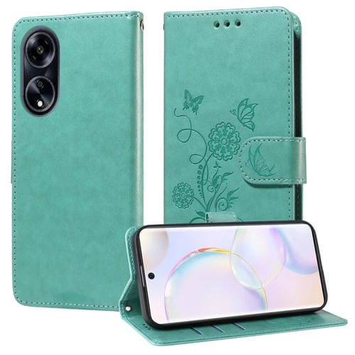 Funda de Cuero con Diseño de Mariposas y Flores En Relieve para Oppo A1/A98/F23 5G (Verde)