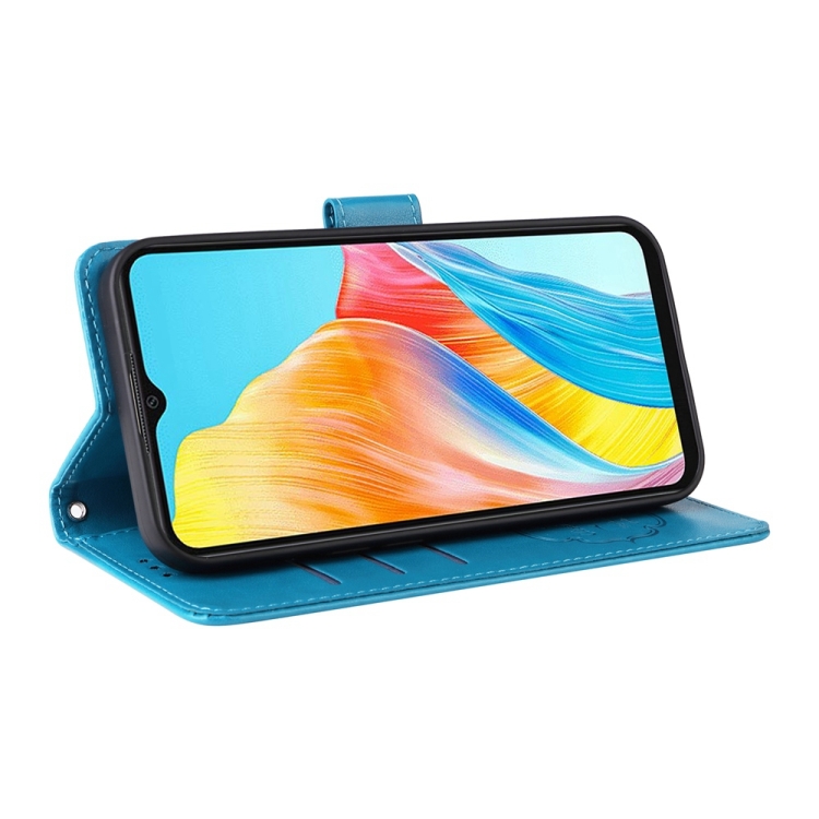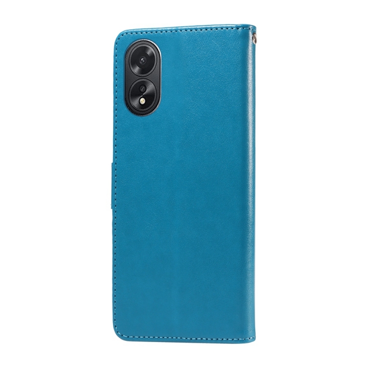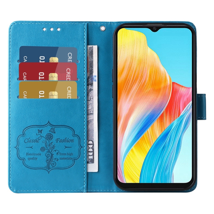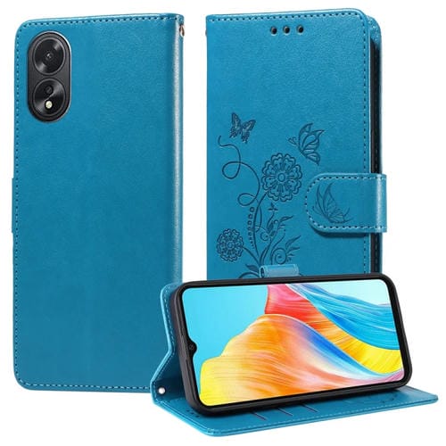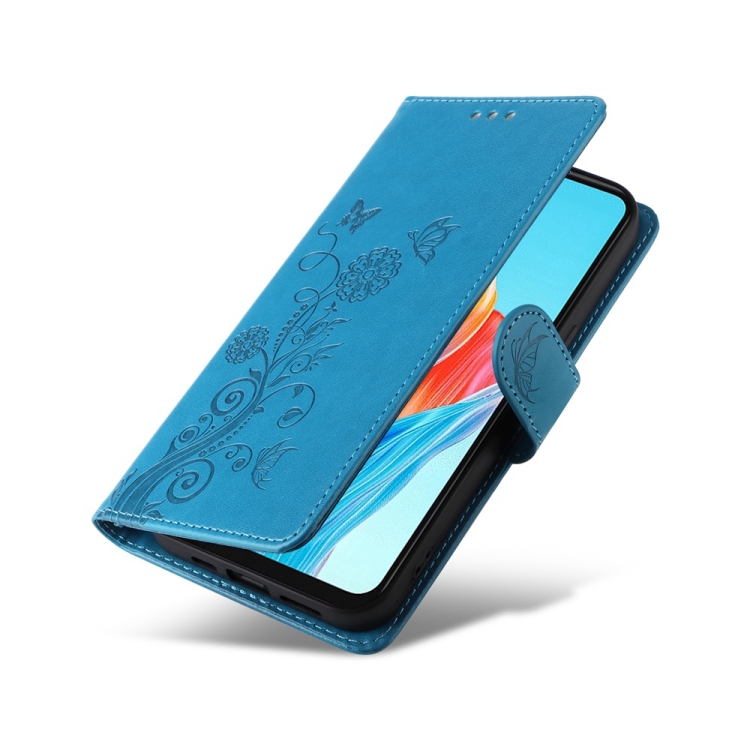 Funda de Cuero con Diseño de Mariposas y Flores En Relieve para Oppo A38 4G Global/A18 4G (Azul)