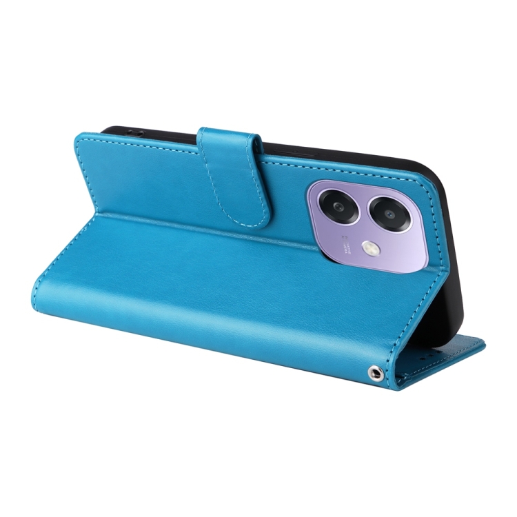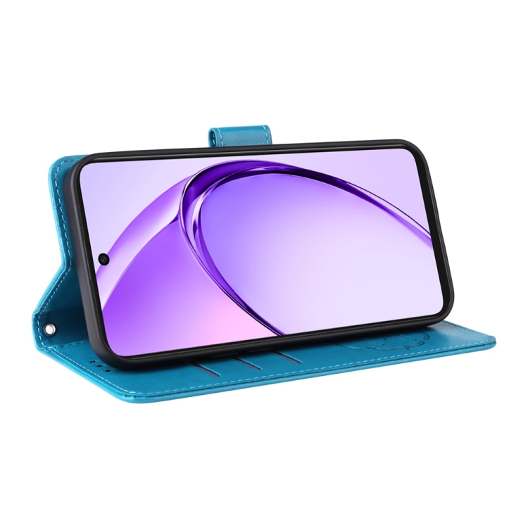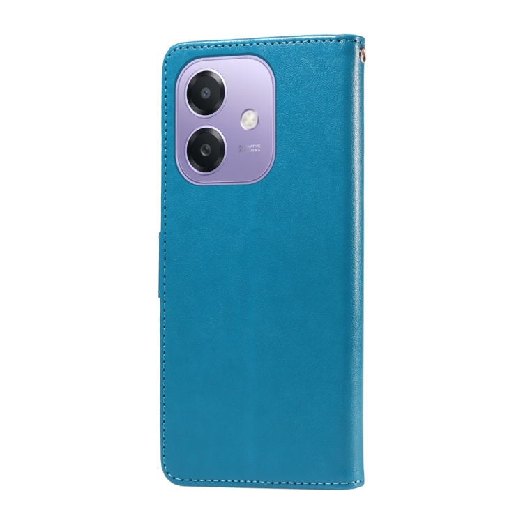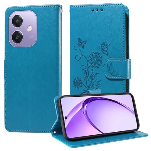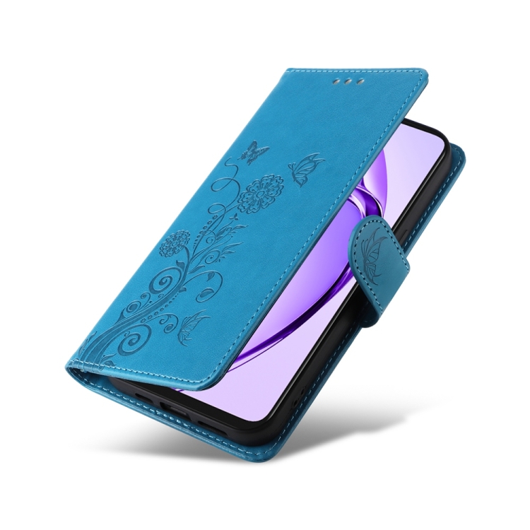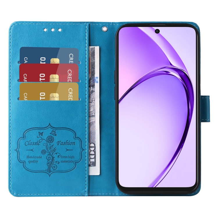 Funda de Cuero con Diseño de Mariposas y Flores En Relieve para Oppo A3X 4G/A3X 5G (Azul)