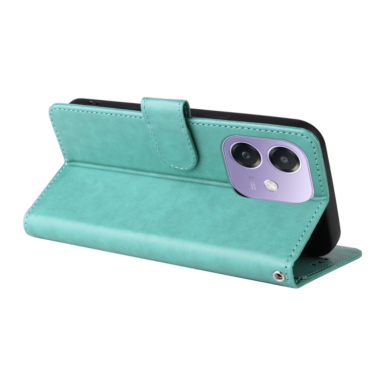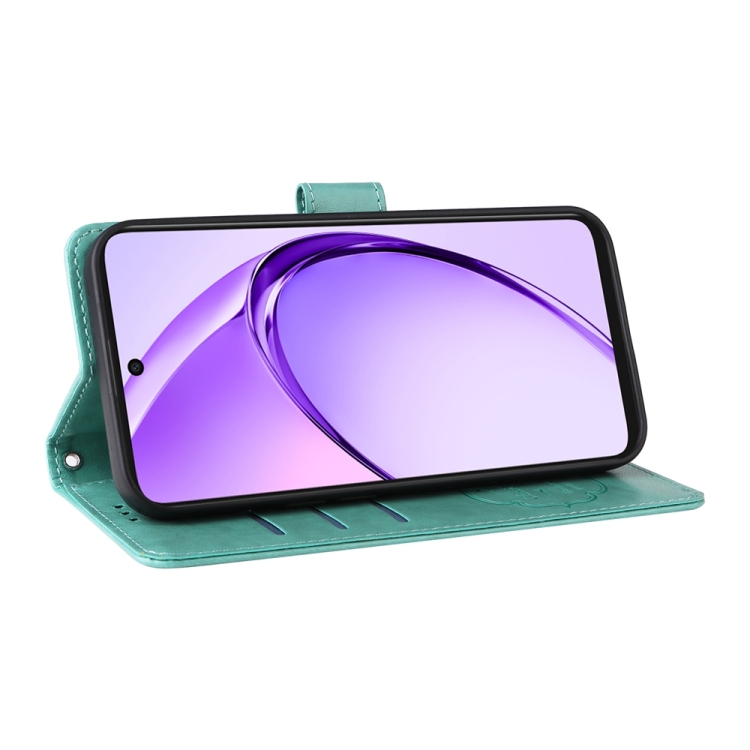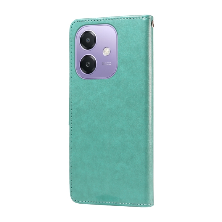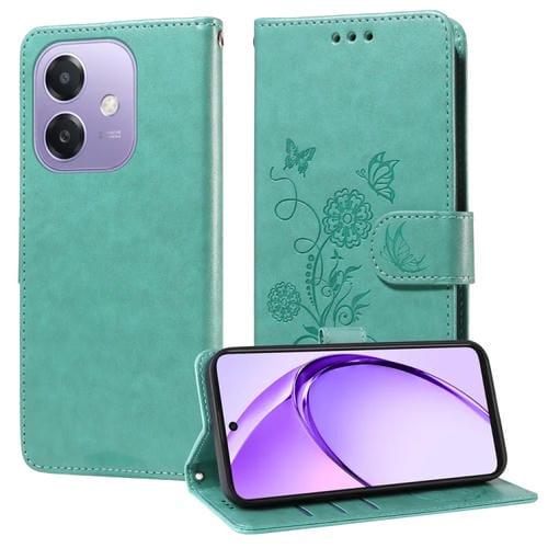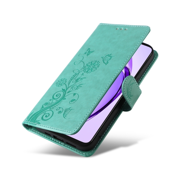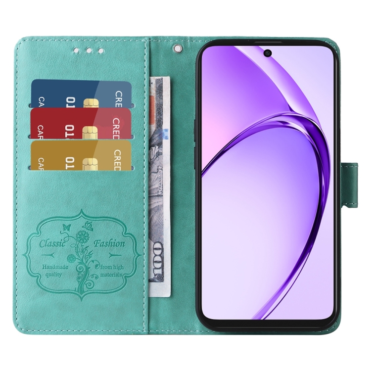 Funda de Cuero con Diseño de Mariposas y Flores En Relieve para Oppo A3X 4G/A3X 5G (Verde)