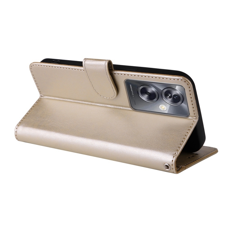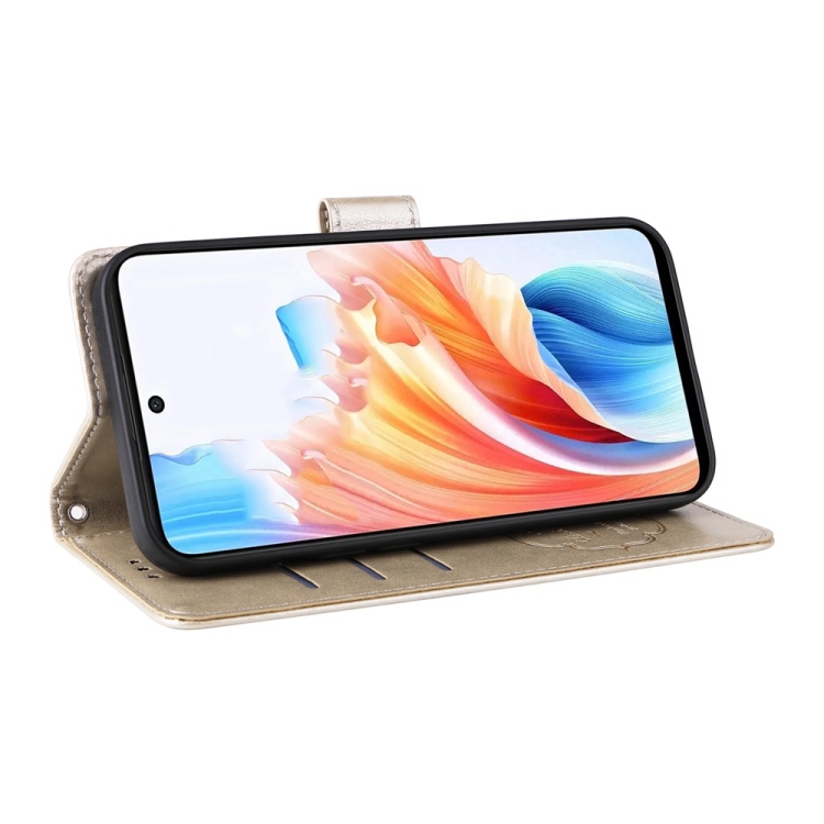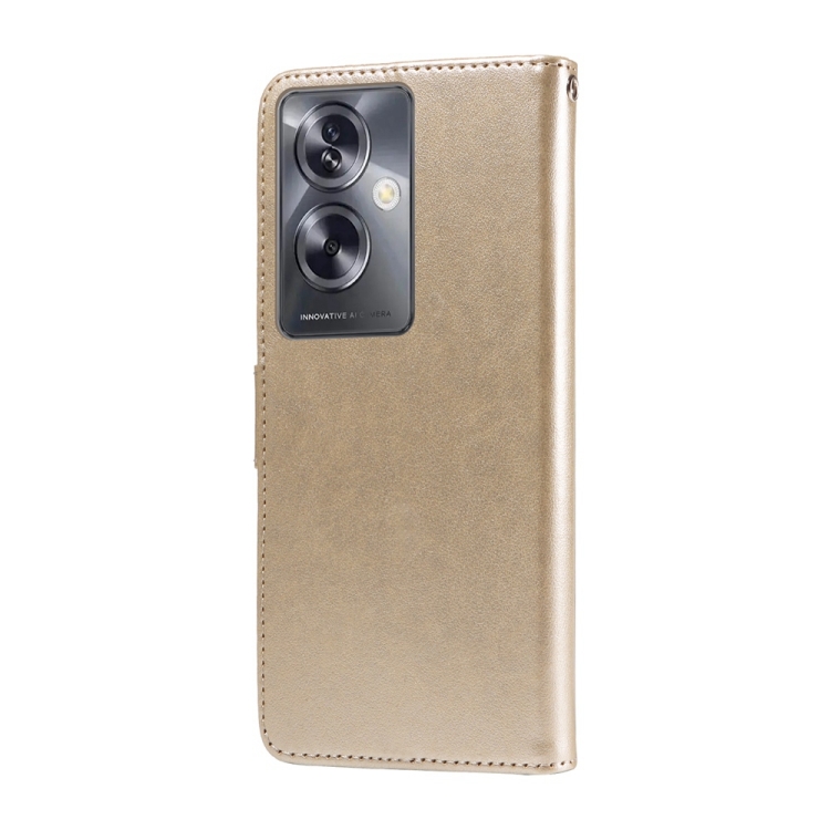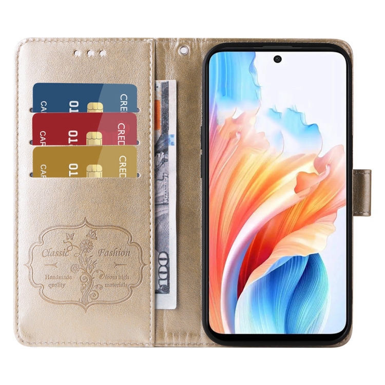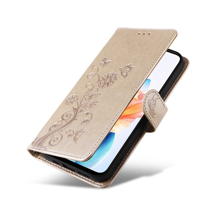 Funda de Cuero con Diseño de Mariposas y Flores En Relieve para Oppo A79 5G (Dorada)