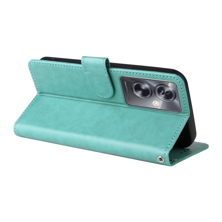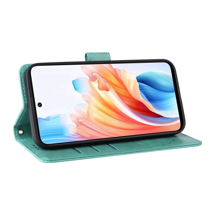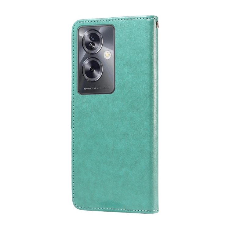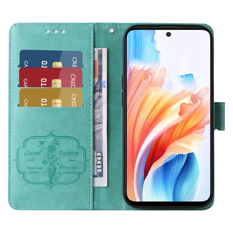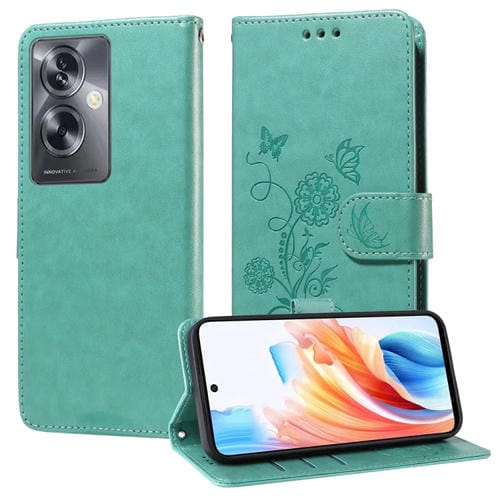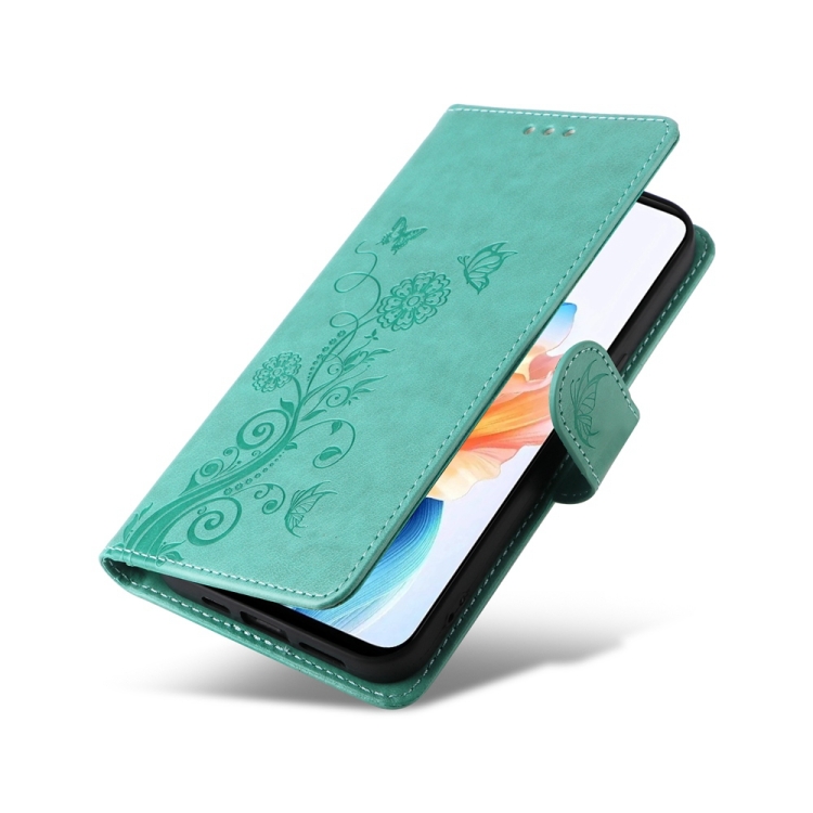 Funda de Cuero con Diseño de Mariposas y Flores En Relieve para Oppo A79 5G (Verde)