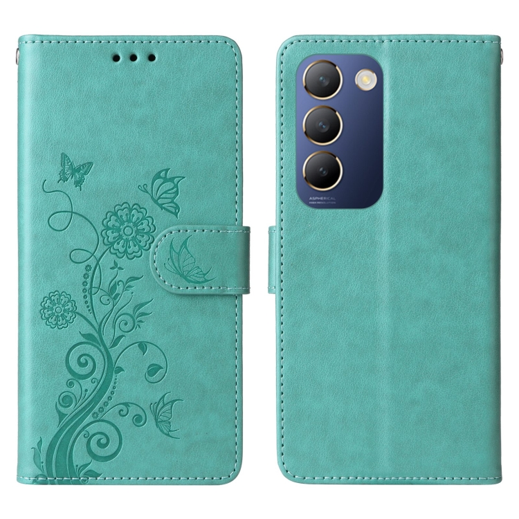 Funda de Cuero con Diseño de Mariposas y Flores En Relieve para Vivo Y100 Idn / Y200E 5G (Verde)