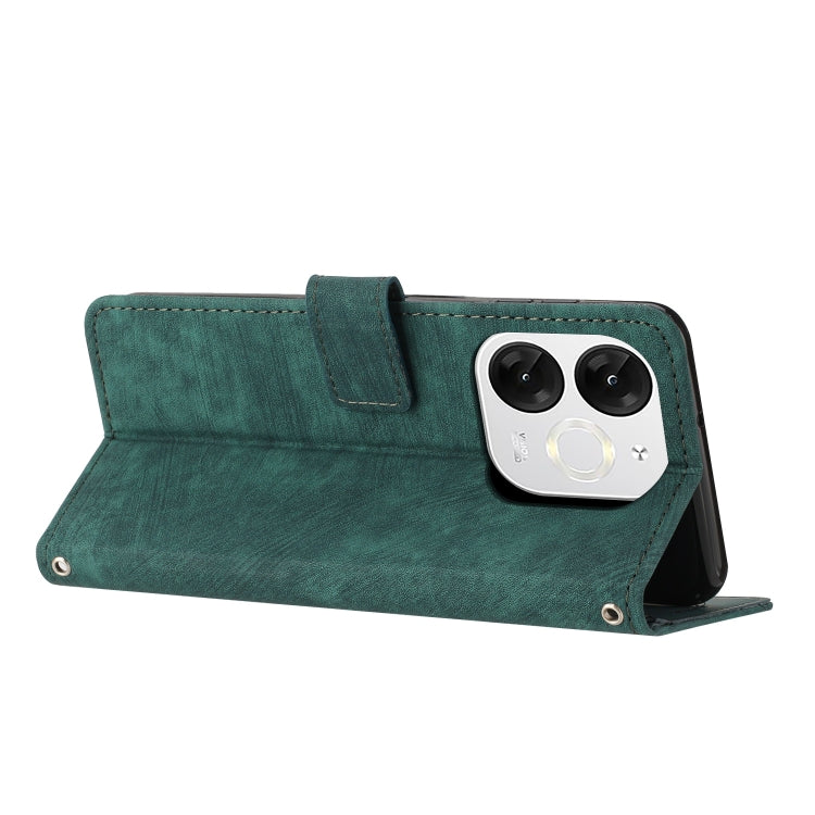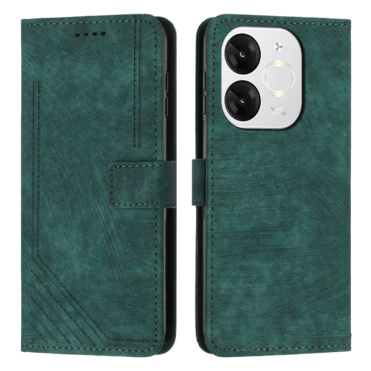 Funda de Cuero Itel A80 con Diseño de Rayas y Cordón (Verde)