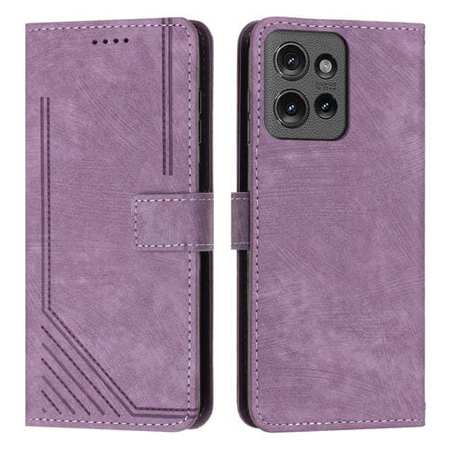 Funda de Cuero Motorola Moto G 5G (2025) con Diseño de Rayas y Cordón (Morado)