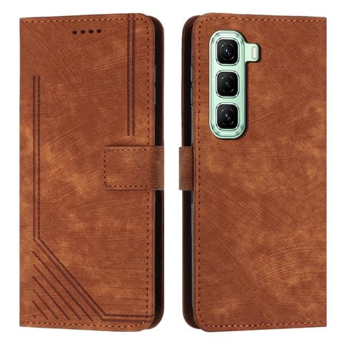 Funda de Cuero para Infinix Hot 50 4G con Diseño de Rayas y Tacto Sedoso (Marrón)