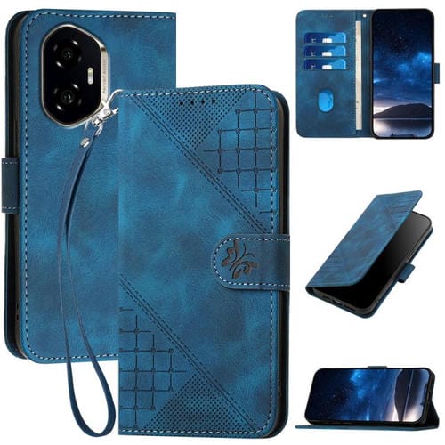 Funda de Cuero con Relieve de Mariposas y Cuadrícula con Cordón (Azul Oscuro) para Honor 300