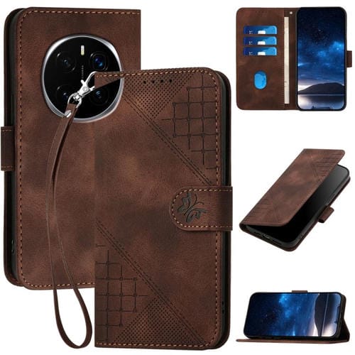 Funda de Cuero con Diseño en Relieve Mariposas y Cuadrícula para Honor Magic7 Pro (Café)