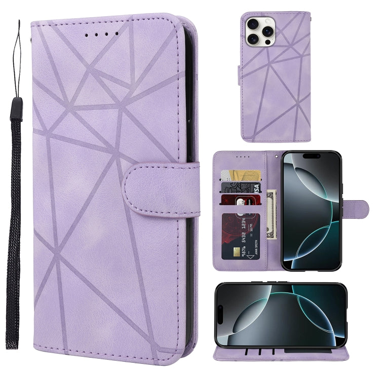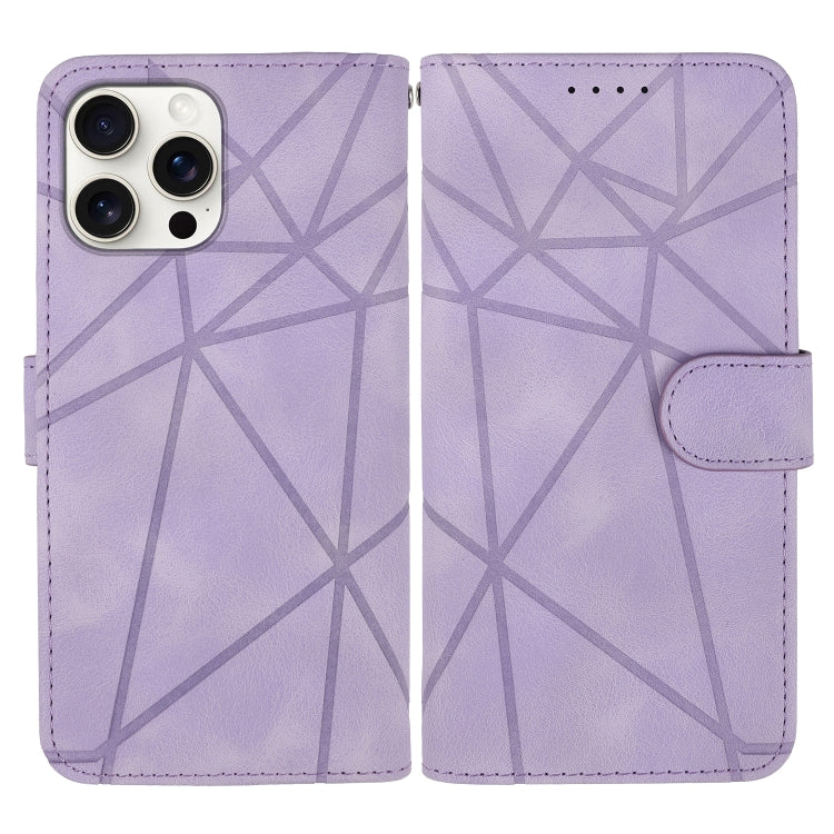 Funda de Cuero para iPhone 16 Pro Diseño Geométrico Líneas de Tacto Suave (Morado)