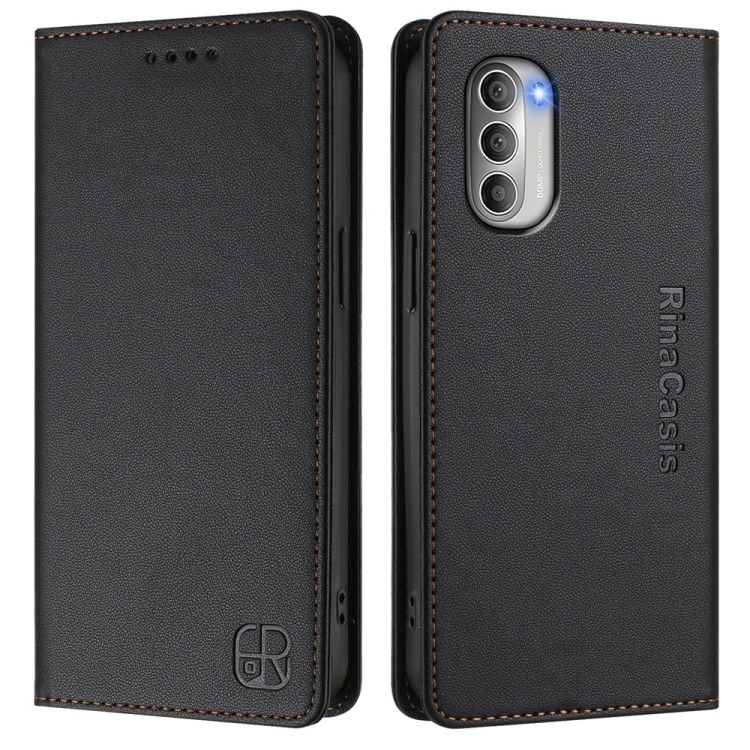 Funda de Cuero con Doble Pliegue y Succión Magnética para Motorola Moto G51 5G Rc01 (Negro)