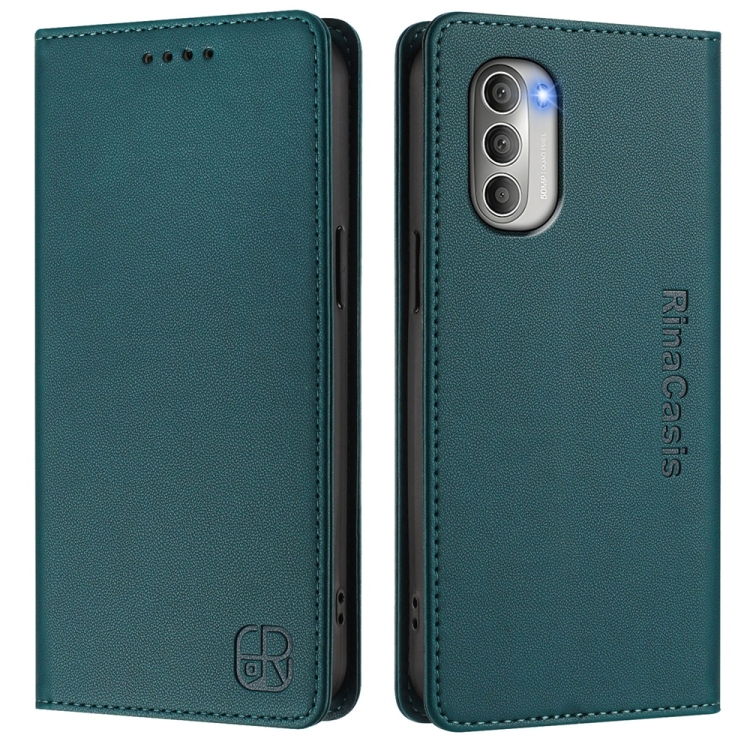 Funda de Cuero Motorola Moto G51 5G Rc01 con Doble Pliegue y Succión Magnética (Verde Oscuro)