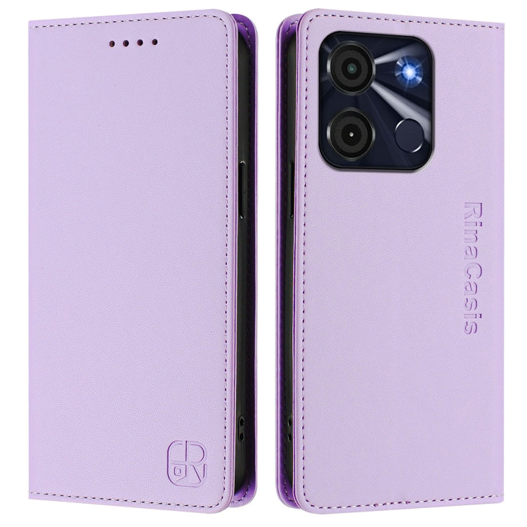 Funda de Cuero Itel A60/60S Rc01 con Doble Pliegue y Succión Magnética (Morado Claro)
