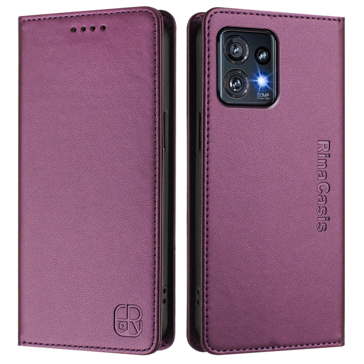 Funda de Cuero Motorola Edge+ 2023 / Edge 40 Pro Rc01 con Doble Pliegue y Succión Magnética (Violeta)
