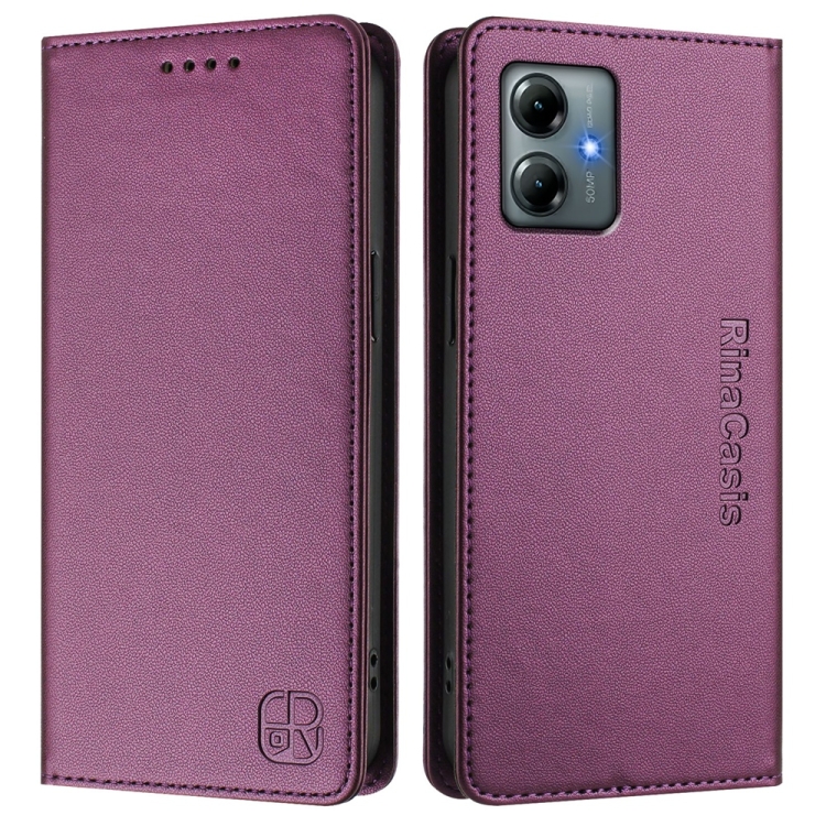 Funda de Cuero Motorola Moto G Play 2025 G Power 2025 Rc01 Doble Pliegue Succión Magnética (Violeta)