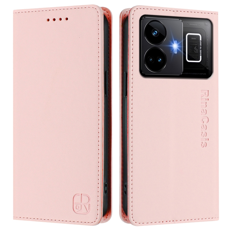 Funda de Cuero con Doble Pliegue y Succión Magnética para Teléfono Realme Gt3 5G / Gt Neo 5 240W Rc01 (Rosa)