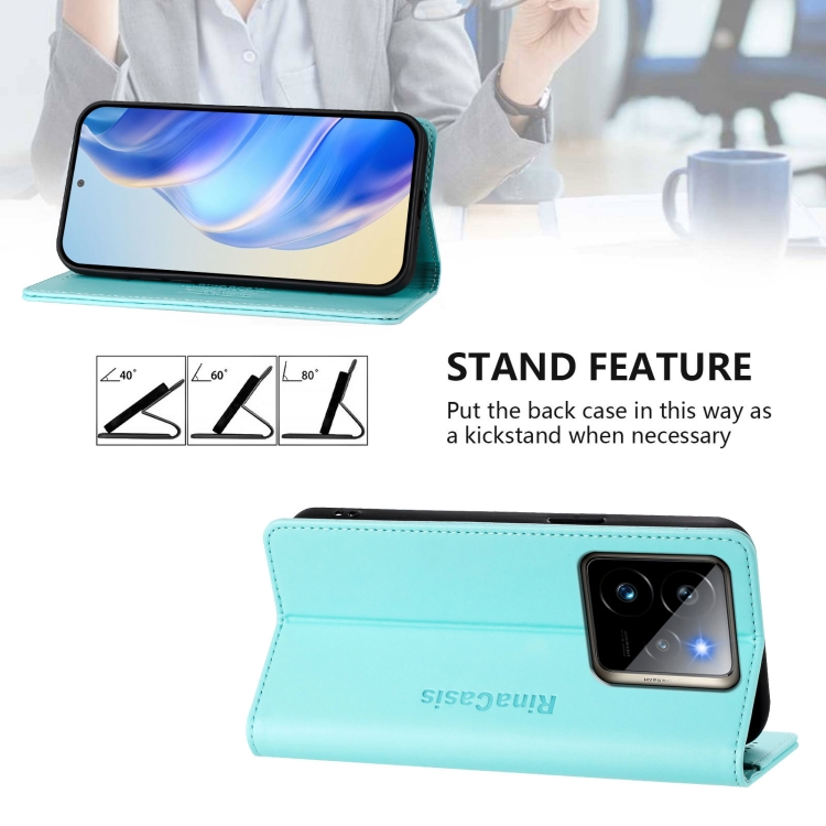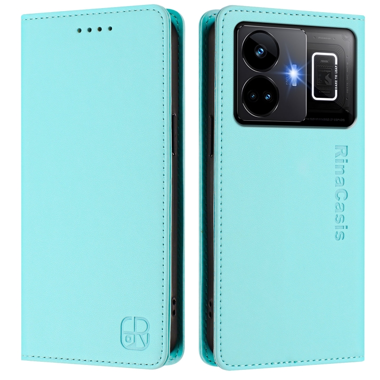 Funda de Cuero con Doble Pliegue y Succión Magnética para Teléfono Realme Gt3 5G / Gt Neo 5 240W Rc01 (Verde Menta)