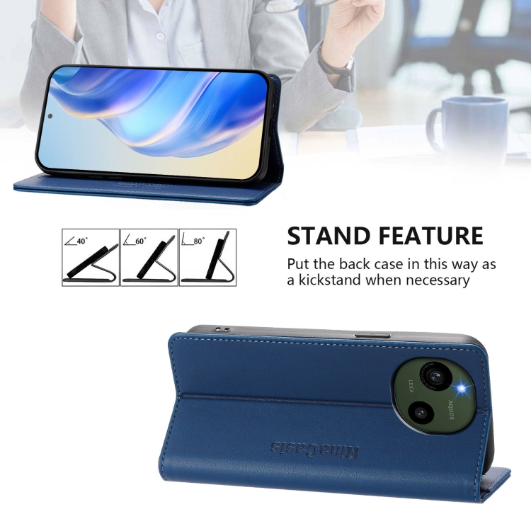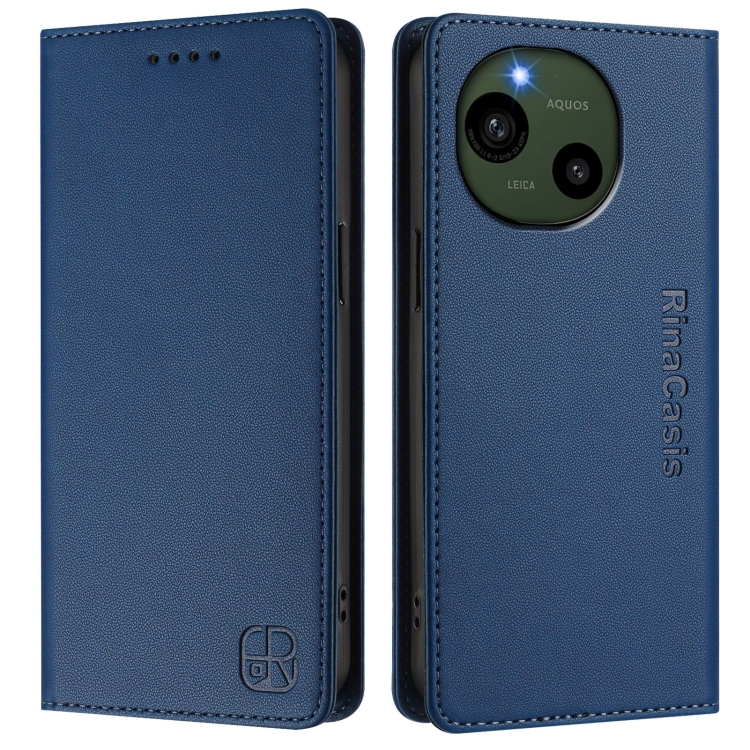 Funda de Cuero para Sharp Aquos R9 Sh-51E Rc01 con Doble Pliegue y Succión Magnética Rfid (Azul Oscuro)