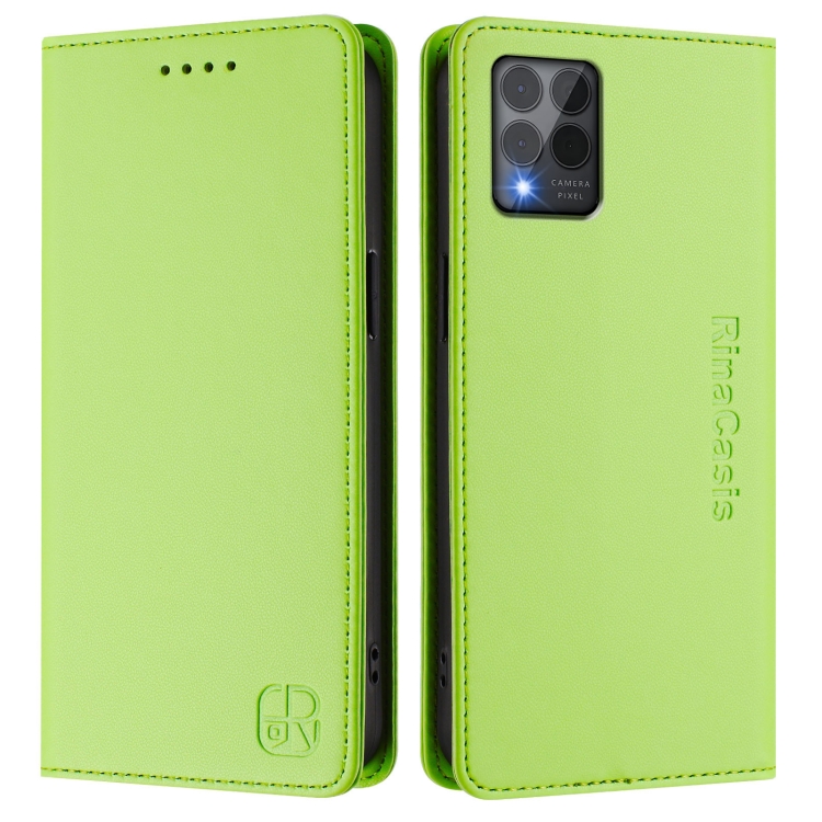 Funda de Cuero T-Mobile Revvl 6 Pro/6X Pro 5G Rc01 con Doble Pliegue y Succión Magnética (Verde Hierba)