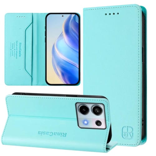 Funda de Cuero con Doble Pliegue y Succión Magnética para Teléfono Xiaomi Poco X6 5G/Redmi Note 13 Pro 5G Rc01 (Verde Menta)