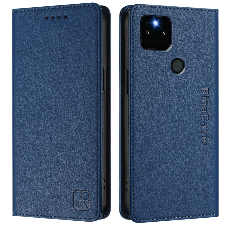 Funda de Cuero con Doble Pliegue y Succión Magnética Rfid para Google Pixel 5A Rc01 (Azul Oscuro)