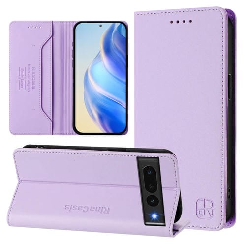 Funda de Cuero con Doble Pliegue y Succión Magnética Rfid para Google Pixel 7 Pro Rc01 (Morado Claro)