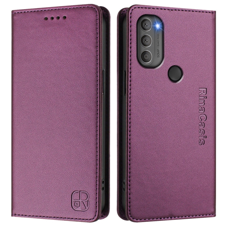 Funda de Cuero con Doble Pliegue y Succión Magnética Rfid para Motorola Moto G71 5G Rc01 (Violeta)