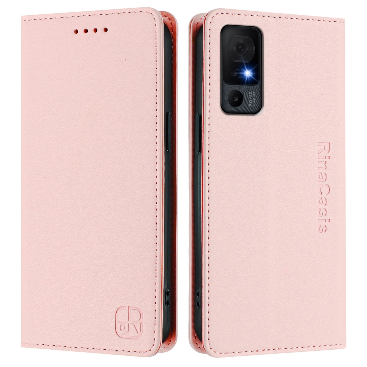 Funda de Cuero para TCL 40 Xl/40T/T608Dl Rc01 con Doble Pliegue y Succión Magnética Rfid (Rosa)