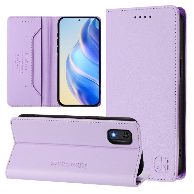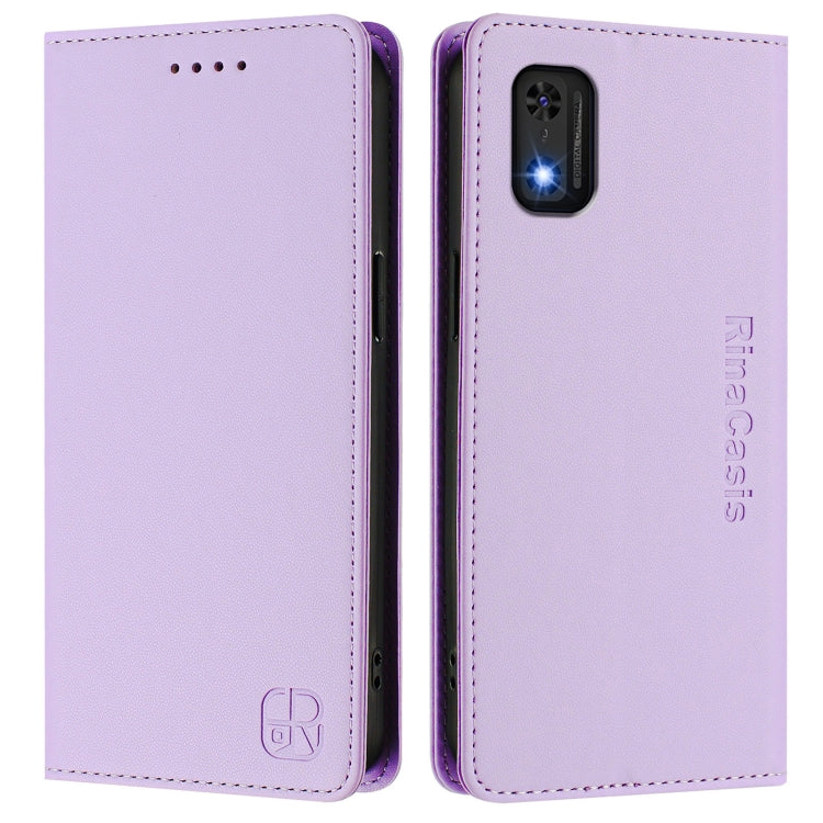 Funda de Cuero con Doble Pliegue y Succión Magnética Rfid para Itel A23 Pro/A17/Tecno Pop 5 Rc01 (Morado Claro)