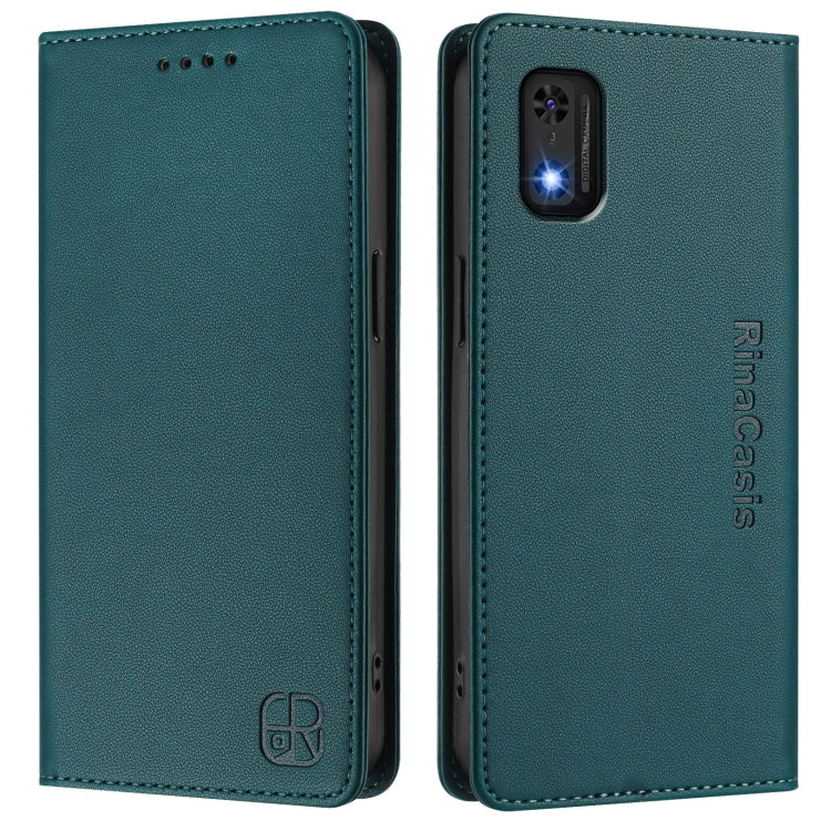 Funda de Cuero con Doble Pliegue y Succión Magnética Rfid para Itel A23 Pro / A17 / Tecno Pop 5 Rc01 (Verde Oscuro)